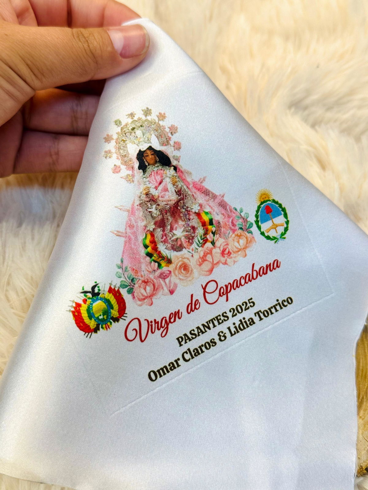 Medida de 25x25Pañuelos Sublimadas para fiestas patronales de cualquier Santo o Virgen de tu devoción